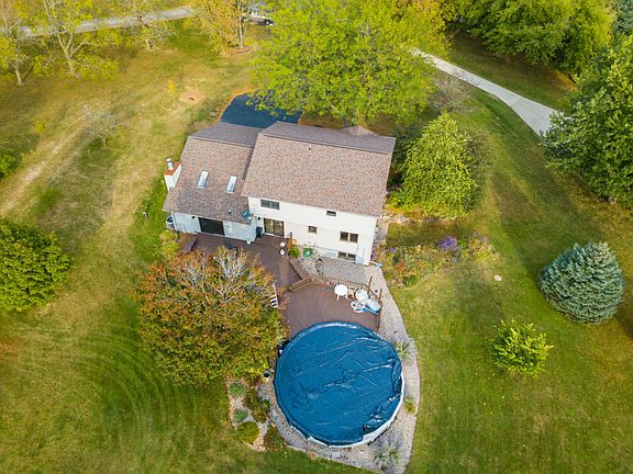 Amazing 1.4 acre lot with mature trees, privacy, great location & breathtaking sunsets. Features of this 4 BR, 3.5 bath home include spacious LR, dining room, open concept kitchen with breakfast bar, large family room complete with a wood burning FP. 2 sliding glass doors lead to the massive deck which frames out the 28 ft. above-ground pool. Upgrades include newer flooring, fresh coat of paint, roof, patio doors, some new Marvin windows, 2016 furnace, 2017 garage door & opener. Large master suite with walk-in closet, jetted tub & shower. Everything has been done, just move right in.