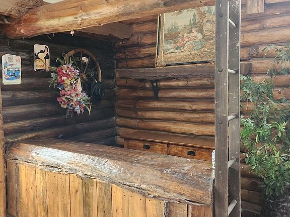 Large bathroomUnique kitchenLots of windowsVaulted ceilings with skylightsRustic log interiorHuge wood burning fireplaceAmple cupboard space