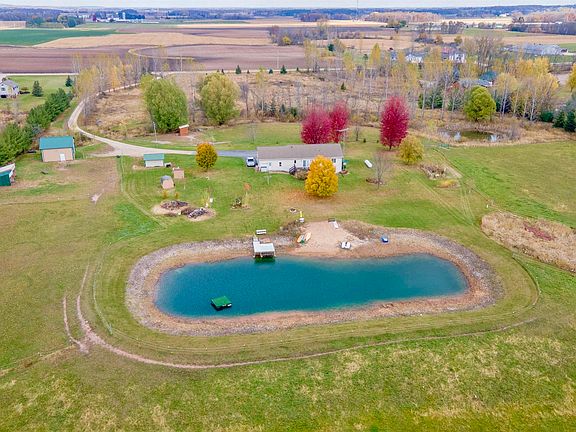 Rare opportunity to own a stunning 3 bedroom, 2.5 bath ranch home on 17 acres. This property, located just outside of town, is ready for your equine companions, complete with a dedicated horse barn, hay elevator and multiple fenced pastures. Enjoy breathtaking views and the ultimate privacy overlooking your own stocked pond. This turn-key property is a rare find, offering a great blend of comfort, charm, and functionality for a desirable country lifestyle. Other features include; Open concept living room and kitchen. Lower level and garage In-floor heat. High efficiency water softener. Asparagus patch, hickory trees, raspberry bushes and rhubarb in the perennial beds. New septic pump installed April 2025, updated primary bedroom shower. LP tank is owned.
