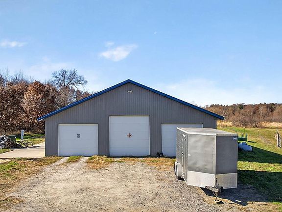 Escape to your own secluded paradise with this newer built home, perfectly situated on 20 acres...making this the ultimate rural retreat! You will love the open concept and layout of this 1848 sq ft home recently built in 2022! The Amish built cherry cabinets are stunning with LVP flooring throughout the entire home! The massive 3-car garage provides tons of space for vehicles, toys and storage! The in-floor heat can be ran with the outdoor wood stove or LP, whichever you choose!This property offers endless possiblilities for outdoor enjoyment, from peaceful nature walks to horseback riding or gardening, plus 5+acres of tillable farm land that could be rented for income! There is also a heated waterer in the pasture recently used for horses and Amo creek meandering through the property!