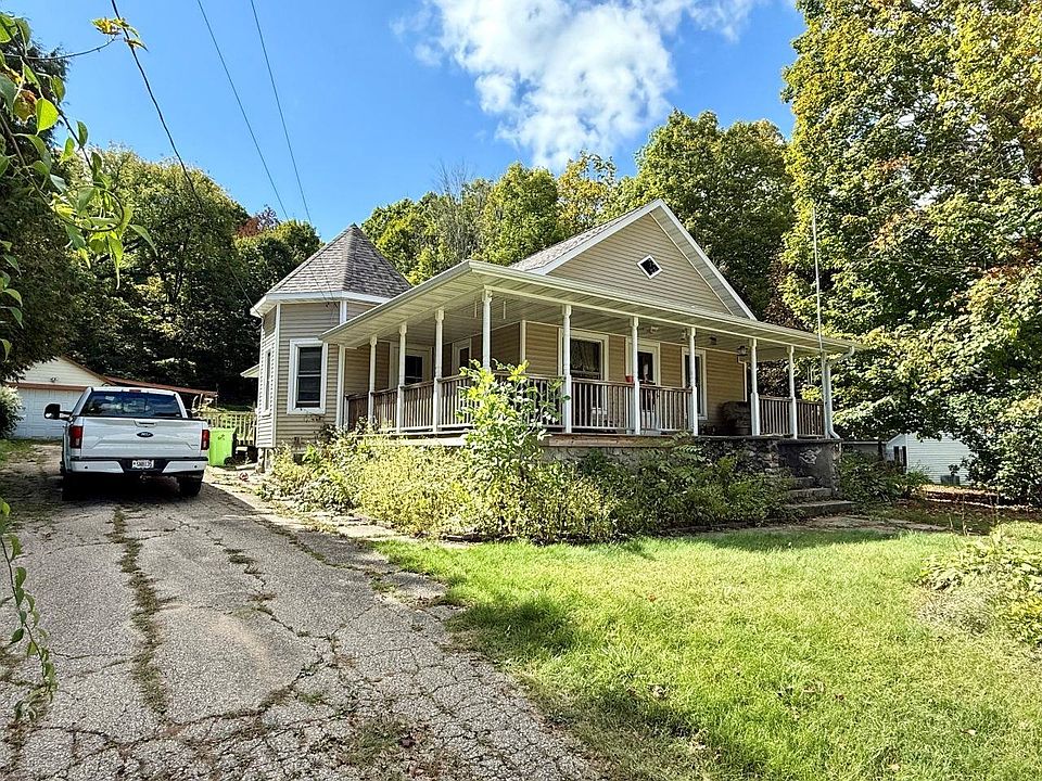 An online auction will run on this property from Oct 1st-Oct 22nd. Nestled in the quiet community of Caroline, this property offers a blend of character and practicality. Sitting on approximately .87 acre, the home features updated exterior details with a wrap-around porch and deck. Inside, you’ll find plenty of potential with a layout that includes three bedrooms, a full bath, kitchen, dining room, and living room—all ready for your personal touches. Also included is a 14x24 detached garage with a 12x24 lean-to, a 12x20 utility shed, and a 10x12 utility shed, giving you all the storage and workspace you could need. Sold as is. Any inspections must be done prior to bidding. Buyers must be pre-approved. Conventional financing or cash buyers only. Offers must have no contingencies.