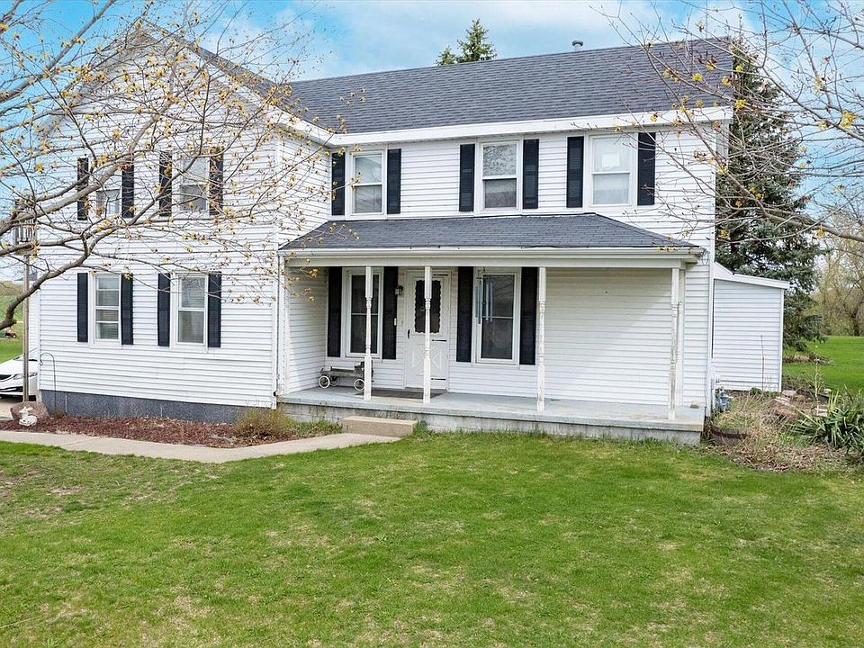 Enjoy this charming 2 story farm house classic residing on a sizeable lot. This 3 bed 3 bath home comes with many features. Single car attached garage with additional 2 car detached outbuilding, low maintenance siding. Roof replacement in recent years (per seller) Also septic line replaced 2022. Main entrance opens to a large family room with gas fireplace, excellent for entertaining guests. Kitchen has plenty of storage and counter space to work with. Master bedroom comes with private attached bath and walk-in closet. Main floor Laundry included and lots of natural light throughout. Home also comes with additional living space for quests on upper level that provides full kitchen and bathroom accommodations. Lots to see, come check it out today!!
