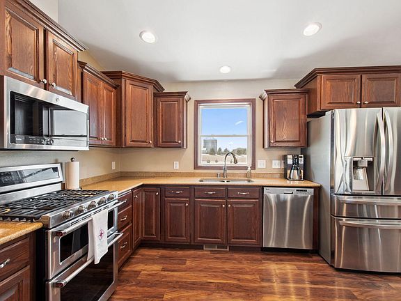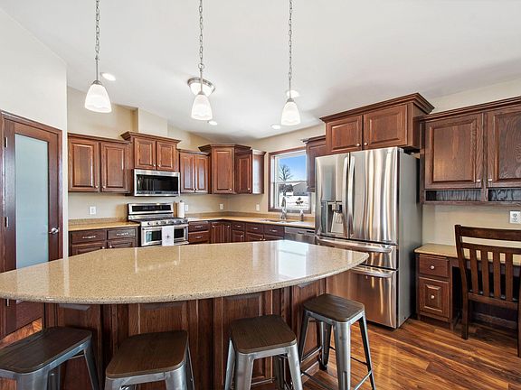 Amazing home on over 3 acres built by Wisconsin Homes. All living on one level. Open concept floor plan with vaulted ceilings, center island, granite counter tops, stainless steel appliances. Custom wood built ins, fireplace and lots of windows. Luxury vinyl flooring. Large master suite with separate tub and shower. Great walk in closet. The other 2 bedrooms are large with walk in closets too. Huge unfinished basement ready for your personal design plans. Rough in for future lower bathroom. Additional parking pad next to garage with custom cement work. Great landscaping and gardens. Fire pit area and a large back deck to view the sunsets. Corner lot with only one neighbor provides privacy. The association includes trails and access to the private beach on the St Croix river! Don't miss out on this amazing home.