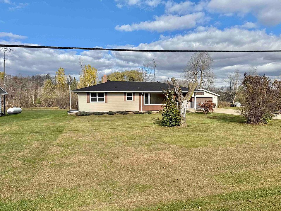 Natural hardwood floors throughout this charming property located in the quaint village of Caroline. The large kitchen and dining room overlook the large yard and has views of the Embarrass River and the Caroline Pond. Spacious living room and the laundry has been installed on the main level. Lower level walkout to the yard and Embarrass River. The detached 2.5 car garage is insulated and ready for your hobbies. Additional outbuilding needs a little repair. The .9 acre lot offers plenty of room! Home is in need of some TLC.