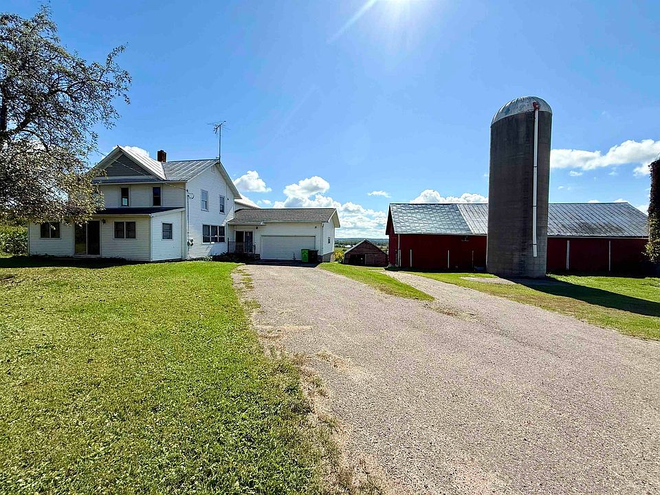 Attached garageTwo silosFamily roomSmaller shedsUpdated windowsNew roofEnclosed porch