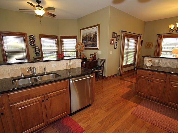 Beautiful high-quality 4 bedroom ranch home built by Perthel Brothers in 2010. The main floor has soaring ceilings that are 10' and higher in the Great Room with cathedral ceiling. The master suite has architectural ceiling beams, his and her walk-in closets and an on-suite bathroom that is the perfect place to relax with a large Kohler whirlpool tub, tile shower and double vanities. The other three bedrooms are generously sized with separate walk-in closets, ceiling fans and large windows to let in plenty of natural light. An open concept kitchen flows into the dinette, dining room and great room. To make the space feel even larger there is hardwood flooring spanning throughout these rooms. All the bathrooms have ceramic tile flooring, granite countertops with Kohler undermount sinks and Kohler bath fixtures. The gourmet kitchen features maple cabinetry with under and over cabinet lighting, stainless steel appliances, and granite countertops with rolled marble backsplash. The home also has a fully exposed finished lower level that is perfect for relaxing and entertaining with patio doors that lead to the beautifully landscaped yard complete with in-ground irrigation.