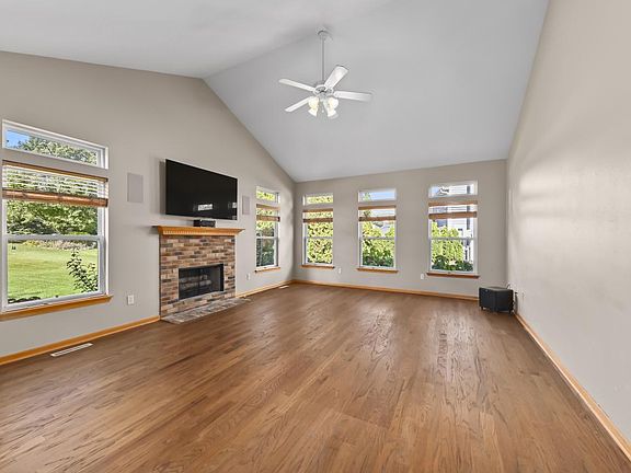 Beautifully maintained & spacious home, perfectly situated on a 1/2 acre lot in the sought-after Lilly Creek III. You're welcomed by a dramatic vaulted 2-story foyer that sets the tone for the rest of the home. The ML has a private office, a formal LR/DR combo & an open-concept layout. The kit boasts granite countertops, maple cabinetry & HWF that flow throughout the entire 1st floor. The large family room is a cozy gathering space complete w/ NFP (gas starter) & 1/2 BA rounds out the ML. Upstairs, 4 BRs & 2 BAs, including a newly remodeled primary ensuite. The LL is truly massive--featuring a bar, spacious RR, bonus room & is already stubbed for a 4th BA. Fresh paint throughout the home. Enjoy the large deck overlooking the huge backyard, prefect for relaxing or entertaining.