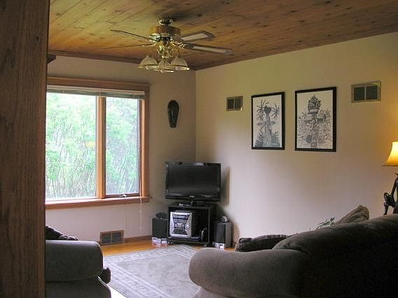 You will want to make sure you come and see this updated, well maintained 3 bedroom, 2 bath home. The large Master with skylites, WIC & private deck. Rec Room with bar, Gas fireplace, Hardwood floors and Knotty Pine Walls gives you that up north feel. All this on 1.78 acres with a fire pit & back yard restored with prairie plantings. There is a storage area under the 2.5 car garage for all your toys. Lots of storage and room to move around. A great place to entertain.