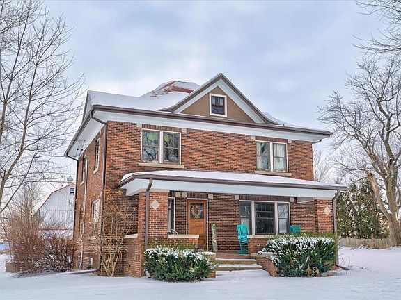 A RARE FIND! Sitting on over 4 acres, this brick beauty features original woodwork, hardwood floors and beautiful built ins. The kitchen features original cabinets, island and large pantry. The living and dining rooms are loaded with character and share beautiful hardwood built-ins. Upstairs you will find the updated bath, 4 bedrooms and a finished walk-up attic used as a master suite or a huge bonus room. A large front porch overlooks beautiful trees and the surrounding countryside. The barn and multiple outbuildings offer endless opportunities for animals, business or hobbies. A great location near the lake, river, public pool, golfing, bike trails and regional attractions. A short drive to the surrounding cities and all of the amenities they offer.