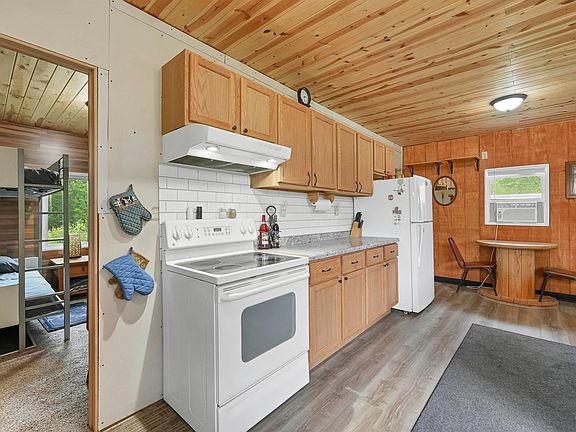 Beautiful 3.32 wooded acreage with so much to offer! Property includes main cabin with living room, kitchen, wood burning fireplace, and 4 spacious bedrooms. Across the property is a bunk house with living area and bedroom. Covered outdoor firepit area to enjoy rain or shine! Convenient storage shed and wood shed. Full electric service. Great location close to lakes and Governor Thompson State Park. Just an hour and a half from the Green Bay Area! Seller has estimates to install well/septic if buyers would like to discuss getting that prior to closing.