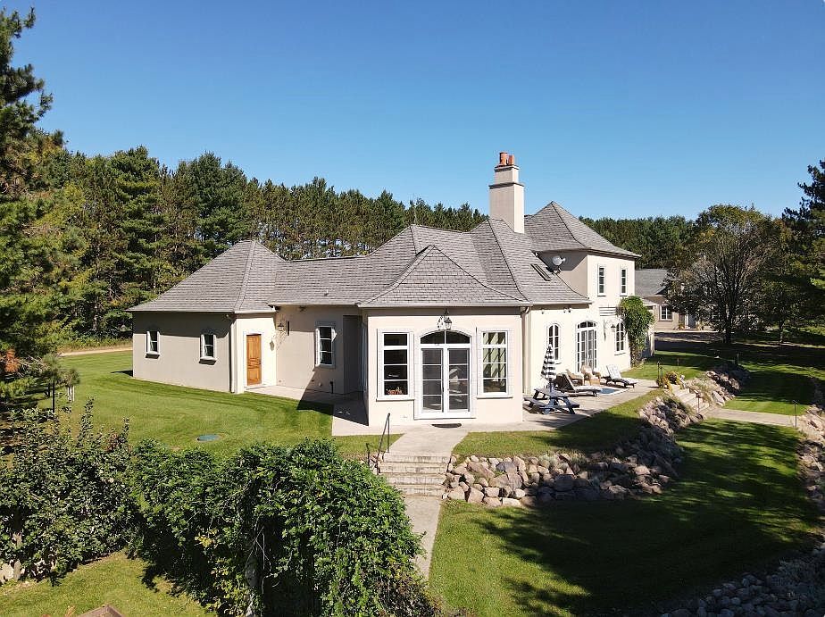 Elegant custom built French Country Estate! Peaceful and luxurious zero entry home on 2+ acres with over 300ft of pristine Embarrass River frontage. Gourmet kitchen and butlers pantry. Grand living/dining room w/breathtaking fireplace & chandelier. First floor master bedroom & bath with bidet, walk in shower and dressing room with cedar closet. Beautiful garden with raspberries, blueberries, asparagus, apple & pear trees, roses, peonies, hydrangeas & more! Energy Star certified home w/geothermal & in-floor heat. Ideal for entertaining. Enjoy your coffee on the patio or in the 4 seasons sun room while watching the abundance of wildlife. 1 hour or less from 3 major airports. Seller's are WI licensed real estate agents.
