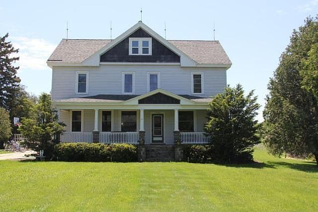 5 BR, 2 full BA well maintained 3,072 sq. ft. farm house on 18 ac. 15 ac & house on S side of road and 3 ac & barn on N side. The main level features LR w/built-ins, KI w/original wood cabinets, DR w/patio doors to deck & commercial grade appliances, Parlor w/french doors, 2 room adjoining Den & sewing room all w/HW floors. Roof on the house is 7-8 yrs old & all windows replaced in the past 5 yrs. Covered front porch. Walk-up attic. 2 car detached garage. Only 2 miles away from Whistling Staits Golf Course
