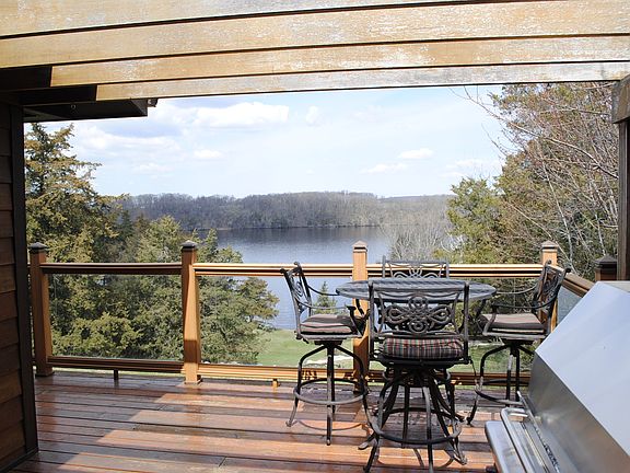 Beautiful Lake Wisconsin home sits on the edge of a quiet bay. Sweeping views of the lake will put you in the right frame of mind as soon as you enter the home. Wonderful kitchen & bath upgrades include solid surface counters, high-end appliances, steam shower, & a luxurious soaking tub. Private deck off the office with hot tub. Main deck features pergola & screened porch. Large sloping lot leads to about 100 feet of level frontage. Ample storage with 4 plus car garage.