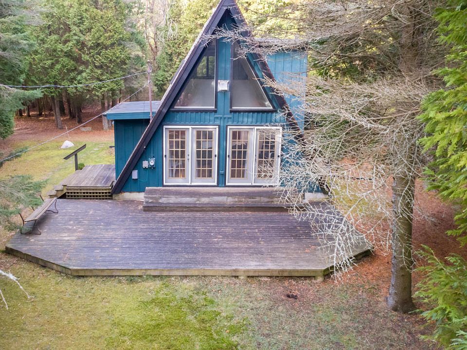Looking for something unique, look no further ! Quiet, warm & inviting! Relax & enjoy your time in this 2BR/2BA 4-season home - Lake Access Rights across road.Situated on a wooded parcel with small creek meandering on the back side of the property. There`s more room here than you think! Inside you'll find a convenient kitchen that's just the perfect size. Open concept living/dining area features a gas freestanding fireplace (main heat source) soaring ceiling & access to the front & side patios. One main level bedroom -full bath & laundry rm. Master Suite & private bath located upper Loft area