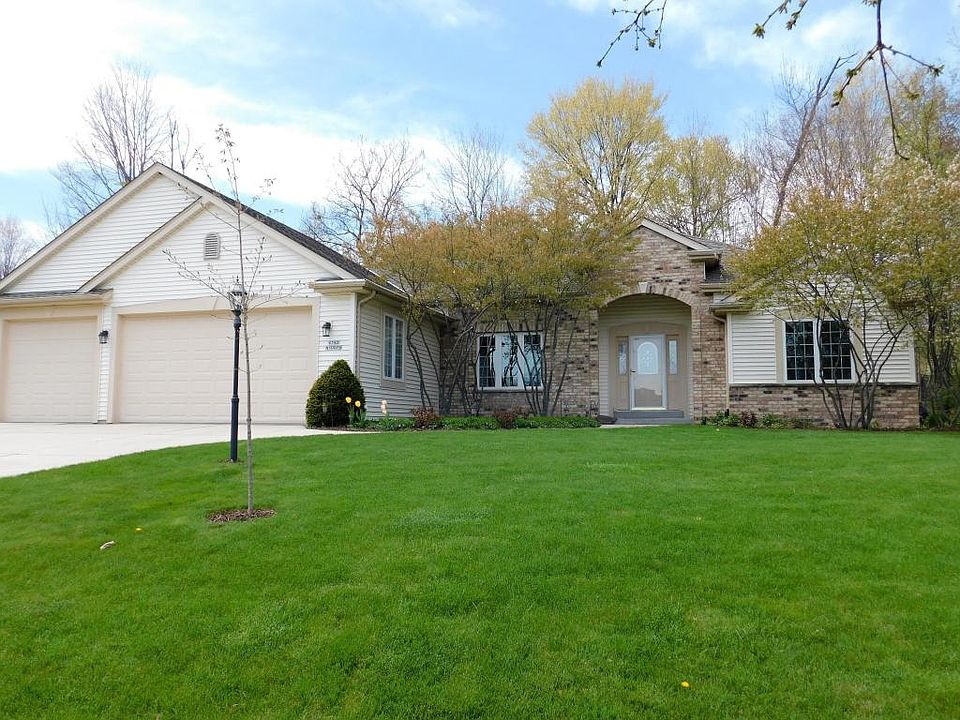 Welcome home to this sunny home located in Sunberry woods! Peaceful yard graced by a wooded boarder allow for entertaining & relaxation on the patio. Split bdrm ranch is perfect for privacy. Dramatic entry opens to great rm w/cathedral ceiling & cozy gas FP. Hickory wood floors wind through entry into the open kitch w/pantry & dining room. The large master bdrm brings the sun in & features a deep tray ceiling w/huge walk-in closet. Continue through to master bath w/double vanity whirlpool & separate shower. It doesn't end here. Spacious mud rm/laundry combo & expansive lower stubbed for bath.