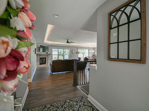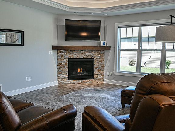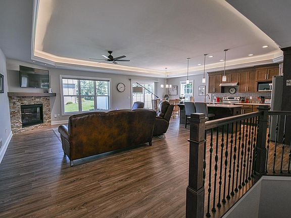 Welcome to Stone Haven! Stunning side-by-side split ranch w/ open-concept great room, espresso maple kitchen cabinetry, Quartz counters, tile backsplash & SS appliances. Tastefully refaced fireplace with modern convenience of in wall outlet for TV. Custom lighting pulls the great room together. Added Privacy fence makes it perfect for pets. Primary Suite boasts dual Quartz vanity, glass shower wall & walk-in closet. The 2nd and 3rd bedrooms on a separate wing offer privacy to the primary suite. Main floor laundry with matching stained cabinetry. Bench entry from the 2.5 car attached garage. Full poured and stamped concrete basement w/ egress windows & plumbing for full bath. Many ADA compliant features allows for one-level living. Meticulously maintained and move-in ready!