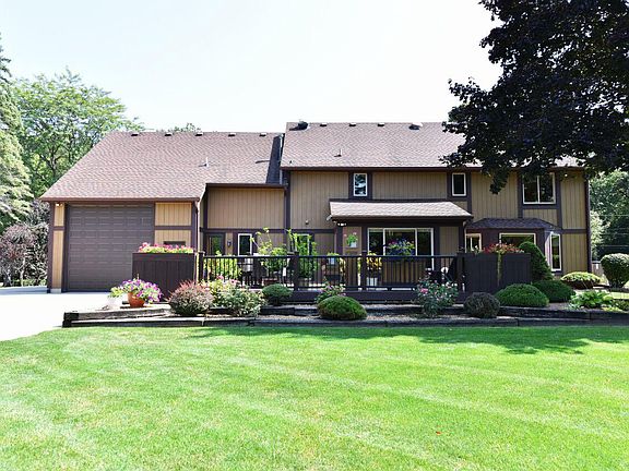 Welcome to a custom masterpiece lovingly maintained by its original owners. Nestled on .78-acre lot w/no sub restriction. GR w/a nat. Lannon stone FP & views of private yard. DR w/coffered ceilings, HWF. Remodeled chef's kitchen w/island, granite counters, Viking appliances, Sub-Zero fridge, gas stove & more. Dinette w/vaulted wood ceilings & patio doors to a Trex deck overlooks the backyard, complemented by an expansive patio/extra driveway or possible sports ct. for basketball/pickleball. 3 BRs, including a primary suite w/WIC that deserves its own zip. MF den w/cathedral ceilings is perfect home office/4th BR. Car enthusiasts will love the 4-car garage w/12x12 rear door, & direct basement access. Every detail reflects quality and care, from the meticulous upkeep to thoughtful upgrades.