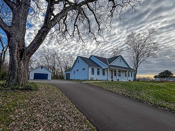 This stunning custom NEW CONSTRUCTION ranch home offers peaceful country living w/modern elegance. Vaulted ceilings w/exposed wood beams create a warm, open atmosphere, complemented by engineered HWFs throughout. The open-concept design flows seamlessly from room to room, w/abundant natural light streaming through Marvin windows. The spacious kitchen is well appointed featuring custom Amish cabinetry, quartz counters & a huge eat up island, blending craftsmanship & style. Enjoy breathtaking views of a neighboring horse farm from the spacious master suite w/huge ensuite. Built w/durability & beauty in mind, the home is finished w/low-maintenance LP Smart Siding, an oversized composite deck in front & a stamped concrete patio out back. A perfect blend of rustic charm & contemporary comfort.