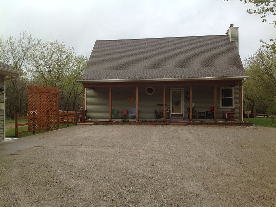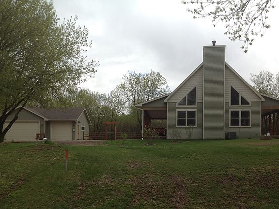 This is a must-see, clean, move-in ready beautiful home and hobby farm! 5 private acres to let your chickens roam, two large fenced in organic gardens and large tree fort! Dual furnace, separate heating/cooling for first floor & lower level. Full front east-facing porch & back west-facing porch. The house and garage both have 3-dimensional, architectural shingles (much longer lasting than normal shingles). Detached three car garage is insulated, dry-walled and heated workshop. Don't let this house fly the coop on you.