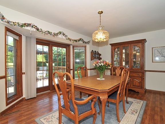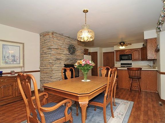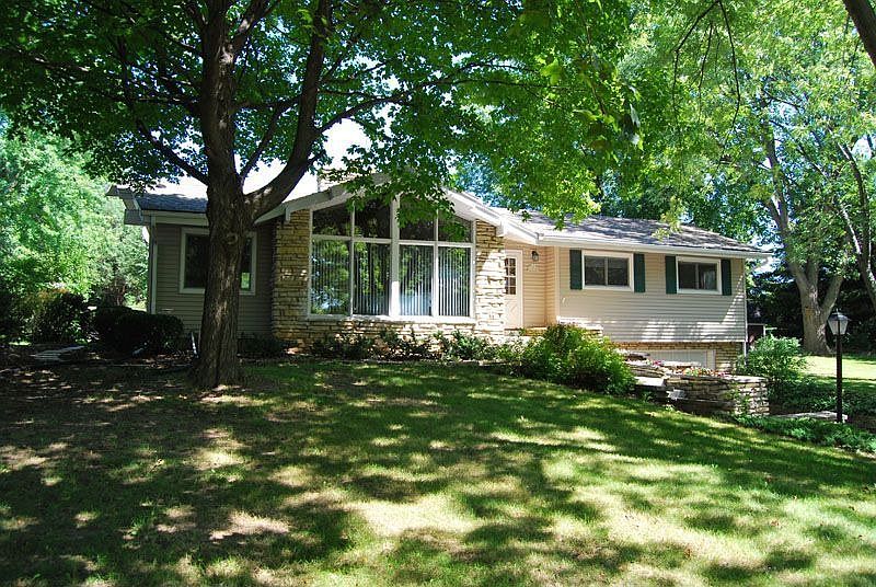Nice ranch home set on an acre lot in the Village of Germantown. Set back from the road you'll enjoy a rather nice and private back yard filled fruit trees and berry bushes. Open concept style rooms with vaulted ceilings and two sided floor to ceiling lannon stone fireplace between the great room and gathering room in kitchen. Large great room with attached formal dining area, kitchen with breakfast bar and large gathering area originally intended to be a family room and currently used as additional dining space. Hardwood floors under carpet in bedrooms per seller, full bath on main level features a whirlpool tub and lower level full bath only 1 year old has shower stall and ceramic tile. Lower level rec room and walk out area to garage. Property has a garden shed, deck and patio. Roof and vinyl siding replaced in '07, furnace, central air and water heater replaced approx. 10 yrs ago. 1 year home warranty included. Ann Lebiecki is a licensed Real Estate Agent with Shorewest Realtors.