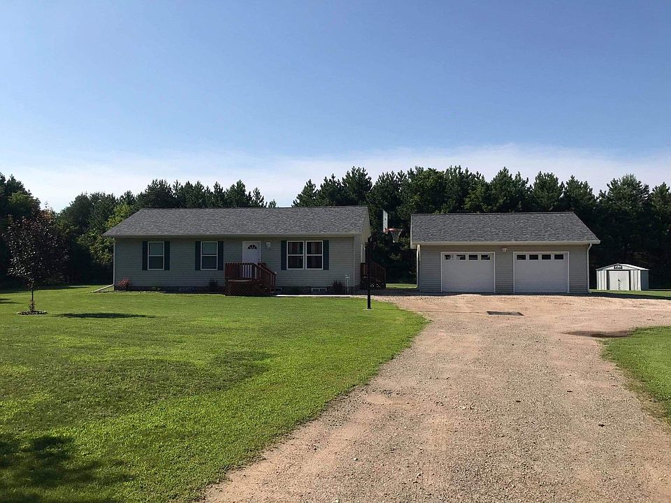 Acres: 12 Bedrooms: 4 Full Bathrooms: 2 Total Square Ft: 2,200 House: Modular on full finished basement Garage: 2+ car garage (26'x28') 5 year old ranch style house with beautiful setting on 12 wooded acres, with open concept, air conditioning, Lp furnace, in floor heating, big bedrooms with walk in closets. Includes: stove, refrigerator, microwave, dishwasher (all stainless steel), front loading washer and dryer. Good hunting, with 4.5 acre food plots, with hunting tower on a quiet dead end road. If interested call Wayne Lauterbach for showing. [hidden information] Hixton address, but it is located outside of Northfield. Whitehall school district. Close to I-94, 30 min to EC, 20 min to BRF.