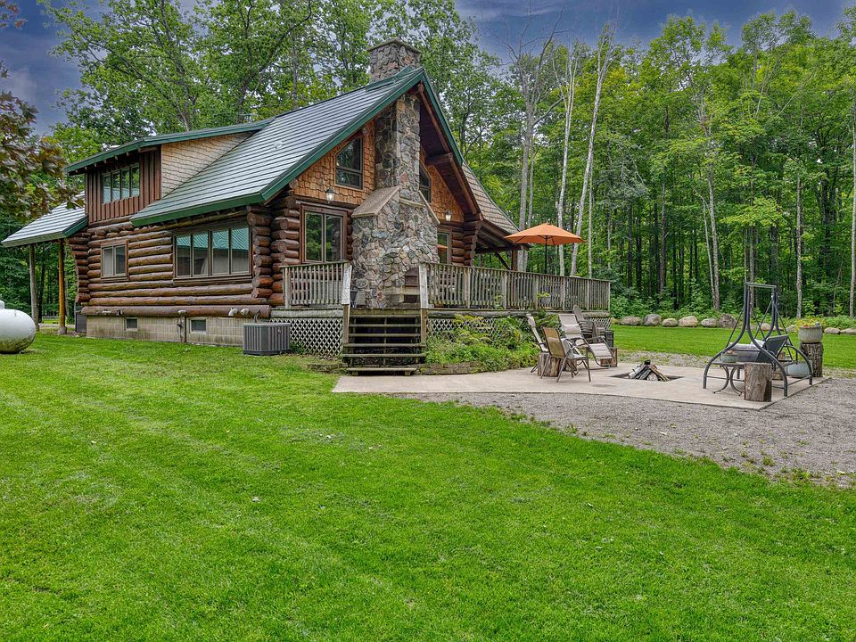Escape to the Northwoods in this 3-bedroom 2-bath log home nestled on 4.78 wooded acres, just minutes from Lake Hilbert. This rustic yet refined home offers a blend of comfort and character, featuring a cozy wood fireplace, open concept, updated kitchen with granite countertops, renovated bath, wrap around deck, patio w/firepit, full basement with bedroom and new bathroom. A rare 40x60 garage has a heated office, finished upstairs w/bed and bath for additional living space and a 12x60 lean to for extra storage. The home is equipped with a back-up generator. Located on ATV/Snowmobile route. Whether you're looking for year-round home or a weekend retreat this unique property has the privacy, charm and location you've been looking for. Additional 4.78 acres for sale mls 50311040