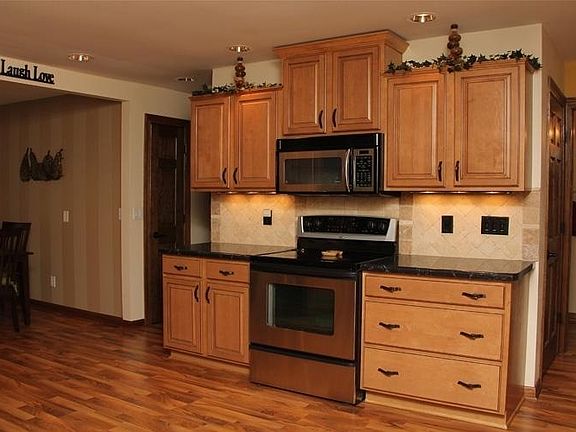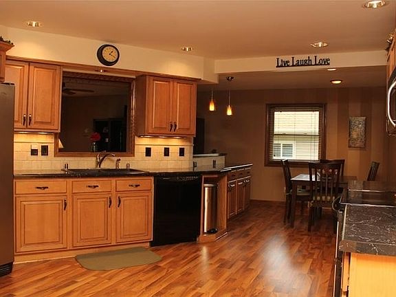 Updates, upgrades, space, functionality and fun! Foyer with built-in cubbies opens to large living room with canned lights and breakfast bar. Dining area opens to spacious kitchen w/newer staggered cabinets, stone backsplash and stainless appliances. Family room with built ins and gorgeous stone natural fireplace opens to large deck complete with upper covered section. Amazing lower level with fireplace, wet bar, full bath and tons of space. 6 panel doors. Newer windows.