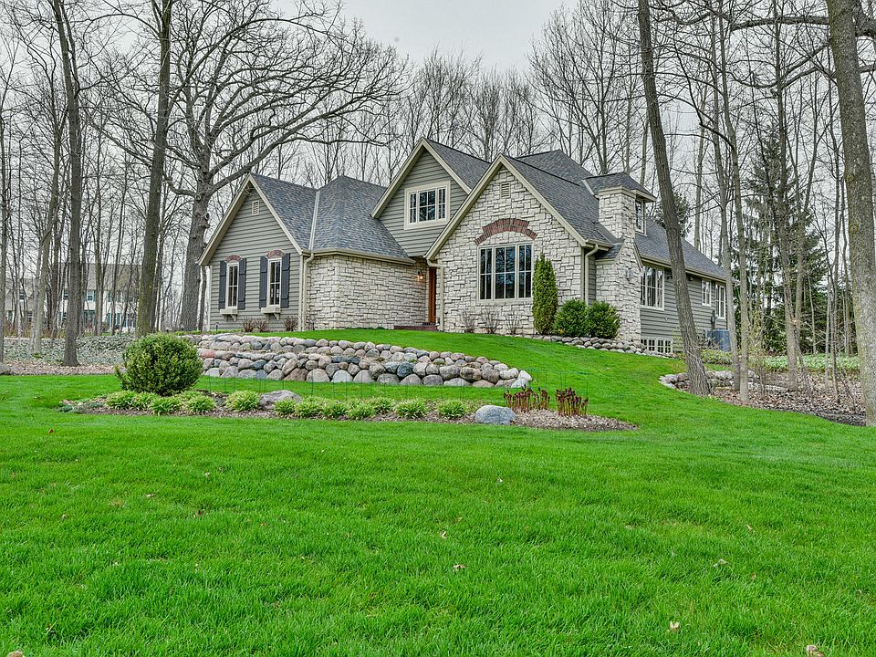 Loads of curb appeal await you with this charming cape cod on a unique wooded lot. Move-in and enjoy the serene views of the lovely woods from all rooms in the house. Meticulous care has been maintained throughout this home and is sure to please! Cozy up to 1 of the 2 fireplaces on the main level. Eat-in kitchen has granite, tile backsplash/floor, ample cabinets, breakfast bar and island. Dining room has French doors and built-in china cabinets. Living room with fireplace, wall of windows & door leading to patio. Office/den with GFP & tray ceiling. 1st floor master suite w/tile shower, granite and walk-in closet with custom system. Main level is completed with powder and laundry rooms. Upstairs you'll find 3 more spacious bedrooms and a roomy bathroom with dual vanity, tiled tub and floor.