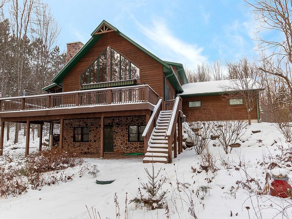 Contemporary style, Cedar clad home on 1.22 acres on the Middle Branch of the Embarrass River. This modern, open concept home, features an eat-in kitchen with all appliances included, solid hardwood cabinets, flooring, and tongue/groove ceiling. Bright massive windows and french doors lead onto the deck, with retractable awning, and covered porch, overlooking the Embarrass River. Custom, River-rock fireplace is set for cozy winter nights. Beautiful stairway leads up to the loft for additional sleeping and relaxation. There's even a cute little built-in chaise lounge. Convenient main floor laundry room. Main bedroom suite with walk-in closet and private bathroom. Also on the main floor is the 3rd bedroom and 2nd full bathroom. On the lower level there are full daylight windows and door making easy access to the yard and potential family room space.,Option of "turn key" to include all furnishings! There are Covenants as this is part of "Apple Ridge" subdivision.