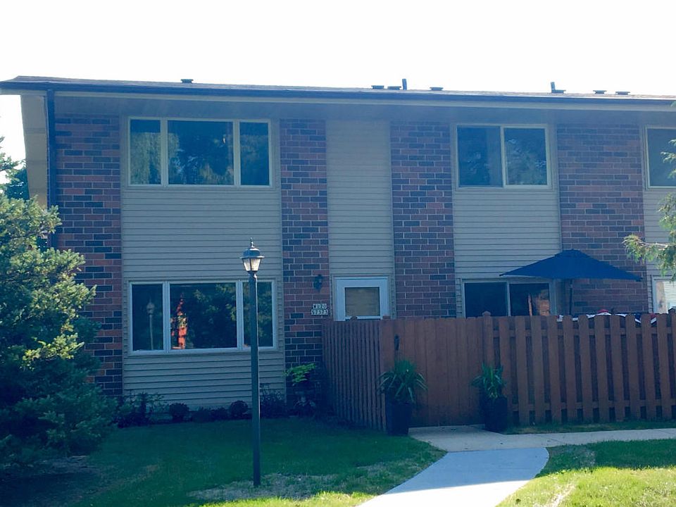 Two bedroom end unit townhouse style condo overlooking beautiful pond. Galley kitchen with newer appliances and pantry. Dining room w/patio doors leading to private fenced patio. Half bath on main level. Partially finished lower level. Two assigned parking spaces. Walking distance to shopping, restaurants, fitness center, and Little Muskego Lake!