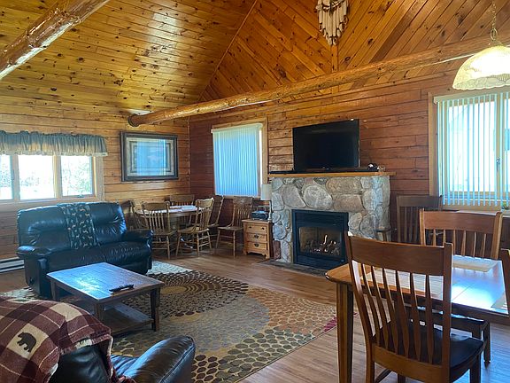 Located on 184' of South Manistique Lake frontage this cedar log home offers one primary bedroom with a spacious loft for sleeping, a full bath with washer/dryer hook up and a roomy great room with a gas stone fireplace. There is also a covered patio used for grilling, dining and relaxing and a graveled RV site with both electricity and water hookup. The property offers gorgeous sunsets and a nice sandy beach bottom. The cabin comes fully furnished including a 14' Lund boat with a 15 hp motor and a 100' roll-in dock.At this time the cabin is being used as a year around vacation rental with many repeat guests. Some stipulations apply for showings and closing. Call for an appointment. Zellar Road is a private drive.