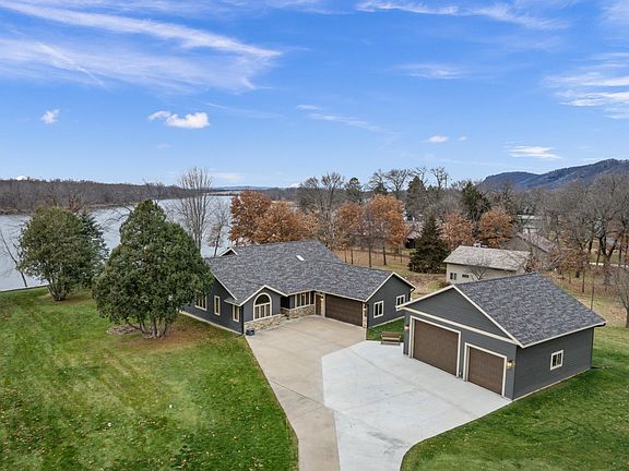 Experience the ultimate in riverfront living on the majestic Mississippi River! This amazing 3-bedroom, 2-bathroom ranch home offers a rare opportunity to own a property with breathtaking riverfront views and 100’ feet of shoreline, complete with a dock permit on the navigable side channel. Nestled on nearly an acre, this meticulously maintained home combines modern convenience and natural beauty.