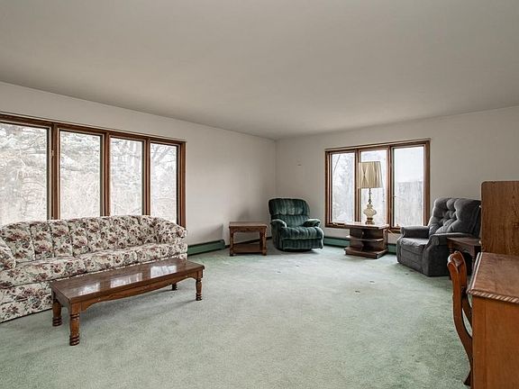 Country home sitting on 5 acres with a 54x70 pole building. The pole building has 1260sq feet finished between the three rooms with a forced air furnace to heat all 3 rooms with concrete floors. The store room has ceramic tile floor. Other side of building is spacious and good for storing lots of larger items and machinery with gravel floor. Ranch home has three bedrooms and 1 ½ bathrooms with partial lower level finished area featuring a family room with wood stove and mini-bar and a walk out to the front yard. Attached two car garage. Home needs some TLC but has plenty of potential with updating and over 2000 sq feet. Deck off the 4 season room/back porch area offers lovely views of the countryside and backyard. Property offers privacy and a great, spacious yard with so much potential. Home has large living room with lots of natural light. Kitchen features appliances and open to the dinette area with plenty of cabinetry and counter space.