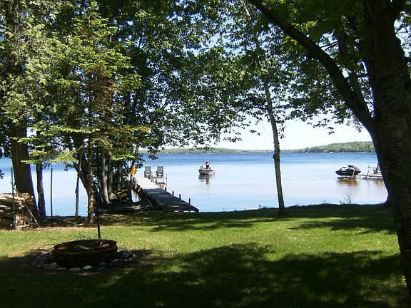 South Manistique Lake that is beautiful all around! 100' of sandy beach and excellent fishing from the dock that is included. This 2 bedroom, 1 bath maintenance free home is clean as a whistle and offers a nicely treed setting on a dead end road. The wood laminate flooring throughout is awesome and the warmth of the tongue and groove in the living room creates a cozy feeling with the electric fireplace. The kitchen flows with the dining and living room and has a new counter top, sink and faucet. Take a walk outside and you'll enjoy sitting on the front deck sipping coffee, enjoying the water view and the birds chirping. Perfect opportunity to own on the lake! #4923