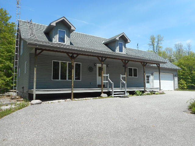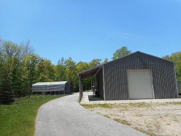 Unique Private waterfront parcel with 21 acres of wooded land and frontage on the Shoe Pac river that is only a short distance out to South Manistique Lake!! A meticulous 3 bedroom 2 bath 1.5 story home with full walk out basement and 2 car attached garage. Then there is a high door 30x40 pole barn with lean too, and heated workshop, & gated paved drive. The land has a nice wooded road down to the river that has a dock & nice water depths for a pontoon to access the lake only 800' away. A trex decking covered porch and an enclosed back porch that could be finished into more living space. Propane forced air heating with a cozy wood stove for relaxing at. 1 bedroom down and full bath with 2 large bedrooms and bath up, with over the garage huge storage space! A true park like setting!!
