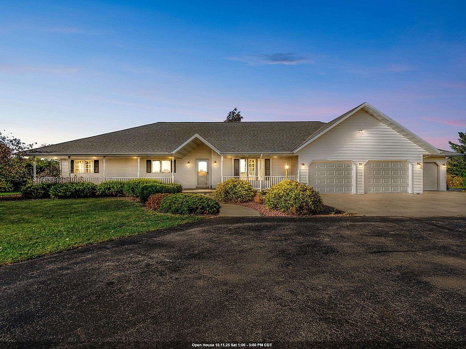 Welcome to this stunning 3-bedroom, 3.5-bath home set on 2 beautiful acres! Offering over 3,000 sq ft of living space, the main level features a bright kitchen with a wall pantry, spacious dining area, and open living room perfect for entertaining. The finished walkout basement is an incredible bonus with a large family room, kitchenette, and plenty of room for guests or gatherings. A heated three-stall garage with an office adds both convenience and flexibility. With a thoughtful layout, modern amenities, and space to enjoy inside and out, this property is ready to welcome you home! *Taxes with new parcel TBD*