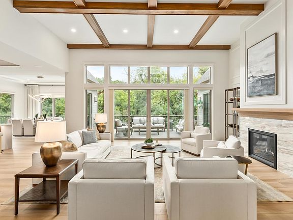 This striking MBA Parade of Homes model sits on a cul-de-sac and backs up to a wooded open space. Designed for comfort & entertaining: featuring two deck areas, a three-season room & an expansive patio w/ gas fire table & covered patio w/ retractable screens next to a tranquil waterfall. Inside: 14' ceiling in the GR, chef-inspired kitchen, dedicated prep area & butler's pantry. Deluxe primary suite includes a spa-like shower & freestanding tub. Bdrm 2 & 3 include ensuite bathrooms. Finished LL accessed via garage or interior stairs, features a golf simulator, sports lounge w/ multiple TVs, kitchenette, exercise room & guest suite. Smart home features include lighting controls, built-in speakers, automated shades & more. Minutes to parks, golf, Brookfield dining & Sendik's Towne Center.