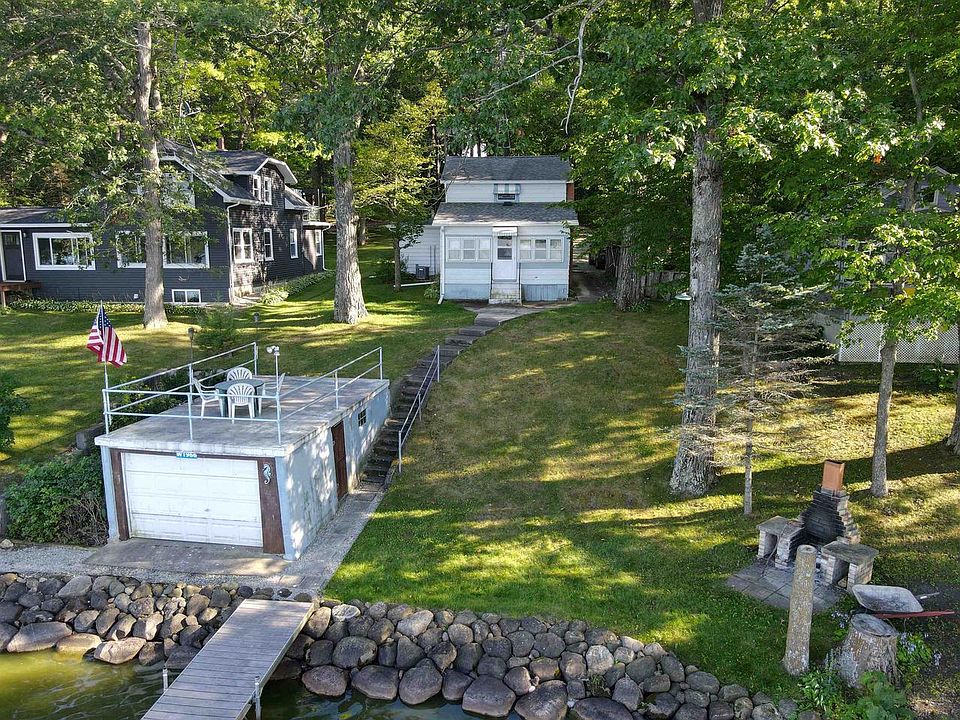 The perfect lake cottage for you to enjoy Little Green Lake frontage! With two bedrooms in the upper level, the main level is plenty big for entertaining. Laundry on the main level, plus a spacious living room with a great view of the lake. This property has a gradual slope to the pier and boat house with plenty of room for storing the water toys. Towards the South side of the property you will find a detached garage (approx 21'x21') with plenty of additional space to store your lake toys during the off season.