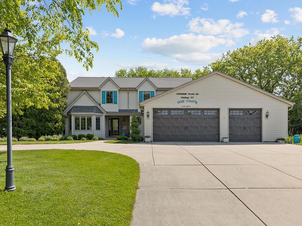 Beautiful Muskego Colonial greets you with a majestic circular drive & lush landscaping. The impressive Great Rm features a GFP and is flooded w/morning sunlight from the skylights & windows. The open-concept design connects the rooms, and seamlessly extends the patio inviting you to a natural paradise. The gourmet kitchen boasts SS appliances, Quartz countertops & a pantry. Retreat with a spa-like bathroom & walk-in closet in the Primary Suite. Perfect for unwinding & admiring nature's beauty is the massive 3 Season Rm. Upstairs are spacious bedrooms & loft (4th bdrm conversion possibility), all w/BRAND-NEW CARPET. The outdoor sanctuary offers fragrant blossoms & gentle breezes for relaxation. Oversized 3.5-car garage provides ample space for vehicles & toys. Exceptional Home!