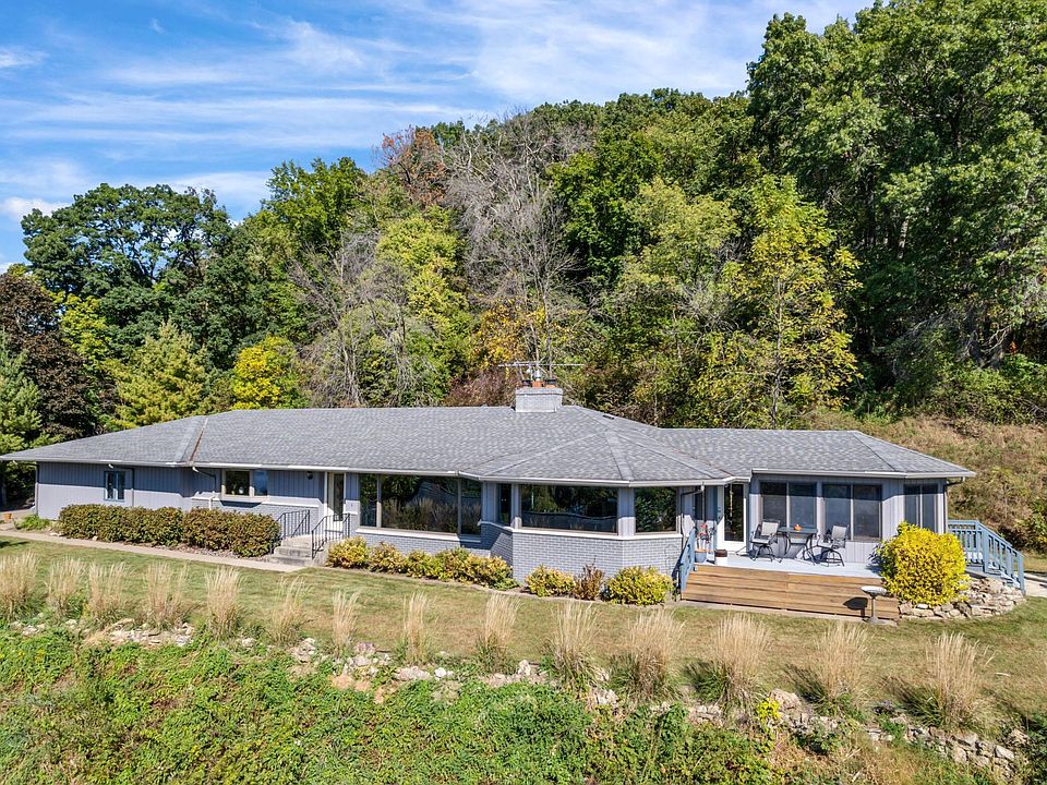 Nestled in the Bluffs above the confluence of the Mississippi and Black Rivers, this home offers so much. Panoramic views of the rivers, with a modern touch throughout. Entertain in the open main floor areas that include a sun-room. Relax enjoying the outdoor decks with all of the observing of the river's nature. Catch views of the eagles as your neighbors.