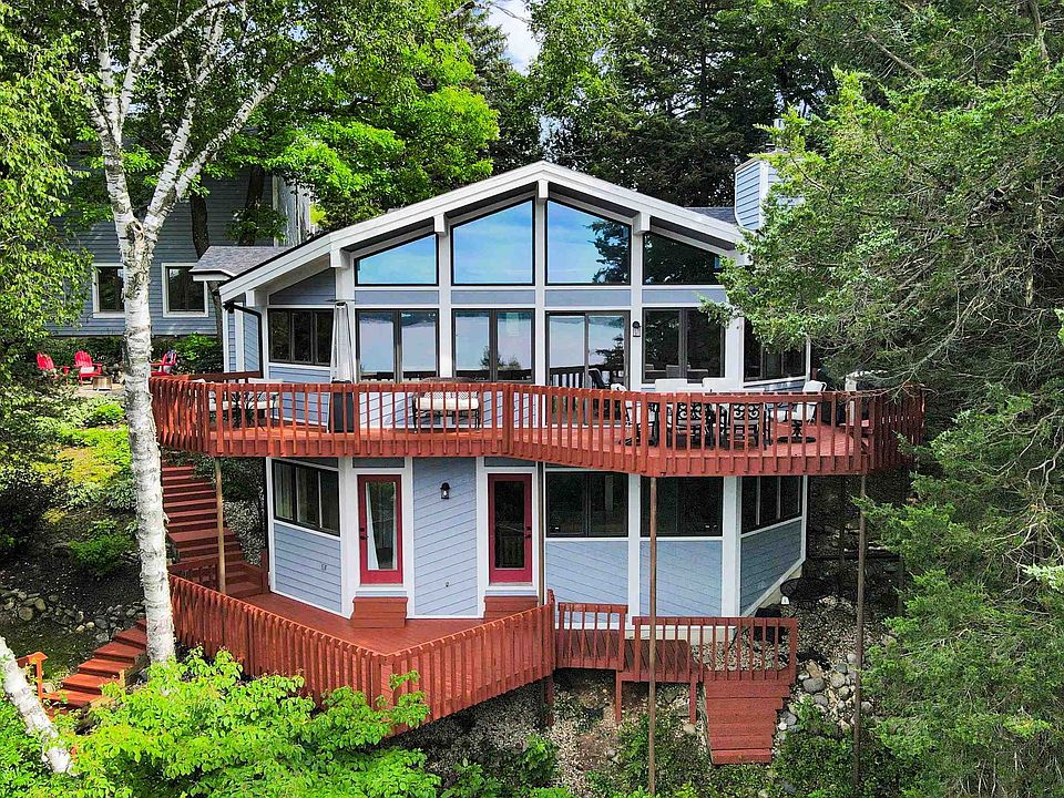 Escape to your own paradise nestled along the tranquil shores of Big Green Lake. Natural light floods this home with expansive windows that offer breathtaking views. The open-concept design, vaulted ceiling, and cozy fireplace are perfect for gatherings. New custom kitchen features Viking appliances, Quartz countertops, Kitchen Island, and more! 2 bedrooms conveniently located on the main level plus a newly renovated bathroom and home gym. The walk-out lower level includes a spacious family room, 2 additional bedrooms, and 1.5 baths. Lower level of garage has the potential for a guest suite. 3 decks & a flagstone patio provide ample space for outdoor entertaining. Plus, a boat dock, boat lift and shed are included. Measurements are approximate. Showings begin on July 8.