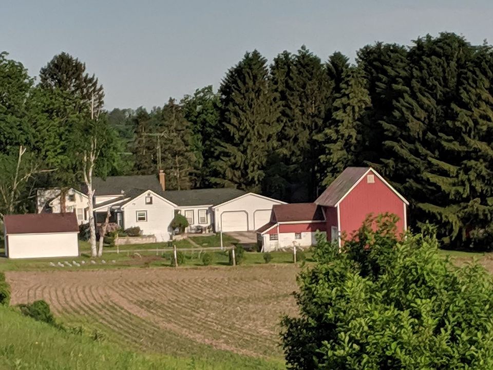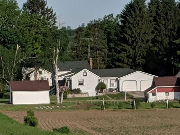 Country living just 10 minutes outside the city and outside storage galore! Peaceful and private area with great views. Cute 1.5 story home with attached garage located on an acre filled with pine trees! This property has a steel sided barn and extra garage, making storage for your extra toys no problem! Bright, cheery kitchen, formal dining room, nice sized living room, first floor laundry and master bedroom and 2 bedrooms upstairs make a very efficient and usable layout here. Enjoy the southern exposure from the cute front porch. Move on out to the country!