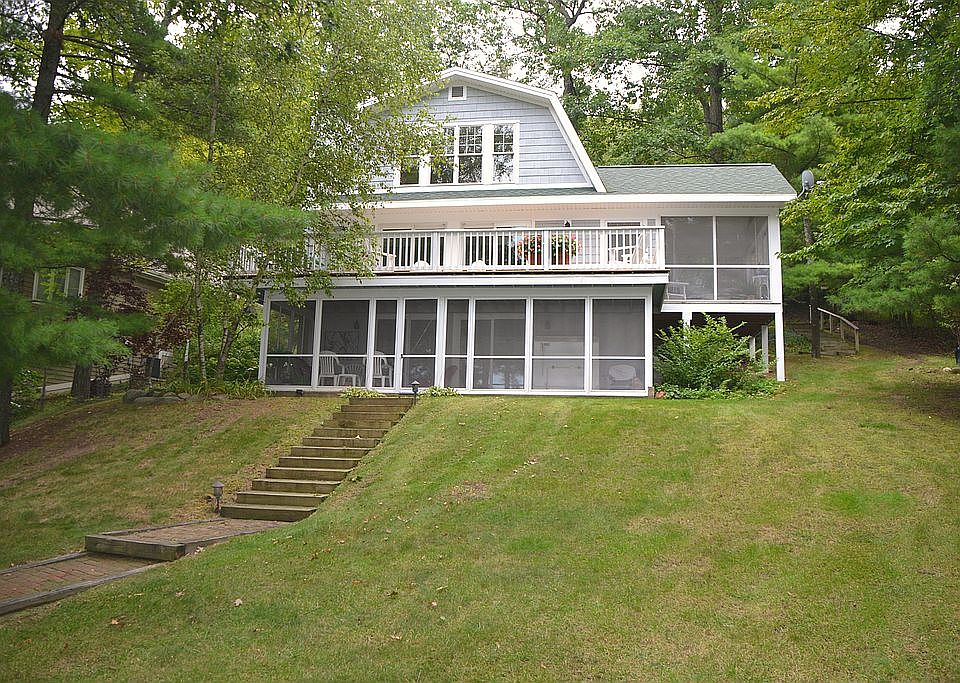Comfort at its best! Beautifully renovated Green Lake waterfront home located on the south shore of Green Lake with 89 ft of frontage. Secluded private yard with green space, woods, and paved driveway. If you are looking for a move in ready lake home with a cottage feel then look no further. Enjoy 3 bedrooms, 2 full bathrooms, the open concept style kitchen, dining area and living room with direct access to screen porch and lakeside deck. Cathedral ceilings, wall of windows, and fireplace all enhance this beautiful home. Also enjoy lower level family room, screen porch, and storage area