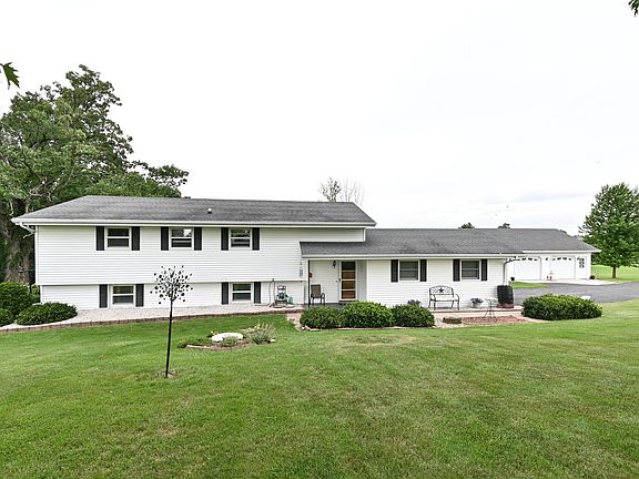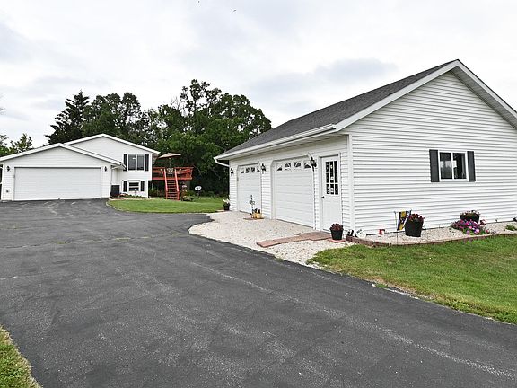 Beautiful Home, Gorgeous Setting! Escape to the pristine 2.6 acres of Picturesque Paradise! Main level of home has been perfectly updated with beautiful plank flooring(2019), new carpet(2019), solid surface countertops and tiled backsplash. Lower level provides lots of space for entertaining family and friends, and features patio doors and full-sized windows, flooding it with natural light. In addition to attached 2 car garage, home also includes detached 2.5 car garage (24x30), which is insulated and drywalled. Impeccably maintained- Furnace/AC (2013), HWH (2016), Pressure tank (2016), Anderson windows and Siding (approx. 2005) Beautiful manicured landscaping includes your own private, spring fed pond for skating and fishing and ???? Rural living halfway between Milwaukee and Madison
