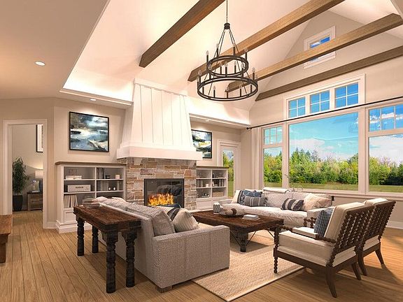 Luxury at its Best. High end quality open concept units. Elegant Foyer w/wood floors & 10' ceiling. Bedroom 32 w/cathedral ceiling. Bath #2 with tile floor, 42'' vanity& closet. Sun filled Sun room w/cathedral ceiling. Huge Great w/high volume cathedral beamed ceiling w/up lighting & crown molding w/LED lighting, Gas stone Fireplace & book cases on each side. Amazing Kitchen w/abundant Amish cabinetry, four seated island w/sink, pantry w/pull out drawers. Master Suite w/vaulted ceiling. Master En-Suite with tile floor, walk in shower stall w/seat, DBL sinks, private commode closet, 9x7 WIC. Huge Utility room w/sink. Upper 3rd Br plus 3rd Full Bath & 23x9 Storage room. Garage is 25' deep great for extra storage.