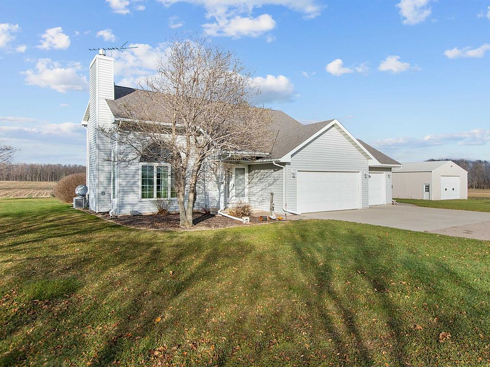 This beautiful 3.45 acre property set back from the road with private backyard, not only offers a lovely 2 story home but an additional 3 large outbuildings. Outbuildings include 28X40 insulated and heated with 220 AMP service, the 40X96 pole building has a separate electric meter and a 45X64 pole building has an additional 16X20 building with running water. The open concept living with a loft overlooking the main is ideal for your entertaining space. Get cozy with the floor to ceiling fire place in the main living room space. Main level has primary bedroom with walk in closet and access to a full bathroom. There is abundant storage throughout with great potential to finish the lower level. Easy commute access to Shawano, Green Bay and the Fox Valley. Showings start Wed., Dec 4, 2024.