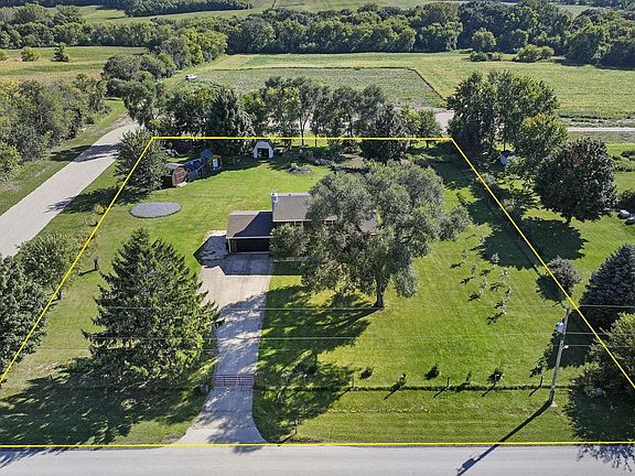 See the vision of your dream hobby farm become a reality! Nestled in the countryside surrounded by fields and trees, you have the charm of an established acre of land and the convenience of a completely updated home. New furnace, AC, LVP floors, fireplace insert, carpeting, and exterior doors (see Feature Sheet for all of the updates!). This 4 bedroom home offers three levels of living space w/ stunning kitchen & granite counters. Spacious living room, family room, & rec room. Bonus room off primary bedroom and flex room in lower level so you can customize each area of the home. Two car heated garage w/ new door. Outdoors, there's a large shed plus chicken shed & coop. 19 new pine trees line the property, fruit trees, fully fenced yard, and gated driveway entrance for added privacy!