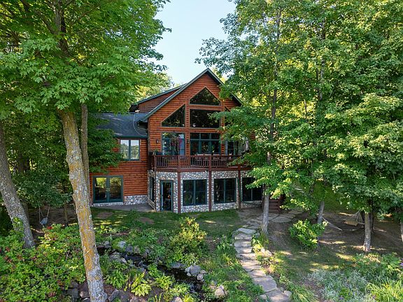 Phenomenal Northwoods chalet!! Discover your private Northwoods retreat with 380 ft of low elevation frontage on Long Lake, NW Wisconsin's top destination lake! This superbly designed 5-BR, 3-BA home spans over 4,900 sq ft and is perfectly tucked among mature trees for exceptional privacy. Inside, you’ll find soaring wood ceilings, warm hardwood floors, 3 inviting fireplaces, and an open-concept layout ideal for gatherings. The custom built luxurious owner’s suite features sweeping lake views, while the spacious lower level family room with theater seating, hot tub room, and sunroom provides the perfect setting for family and friends. Step outside to enjoy multiple deck spaces, a soothing waterfall, and a fire pit area. A heated, insulated 4-car garage ensures plenty of room for vehicles and toys. Long Lake offers 19 miles of excellent fishing, boating, scenic shoreline, sandbars, a full-service marina, & a boat-up golf course. Plus, the main ATV trail is just down the road.