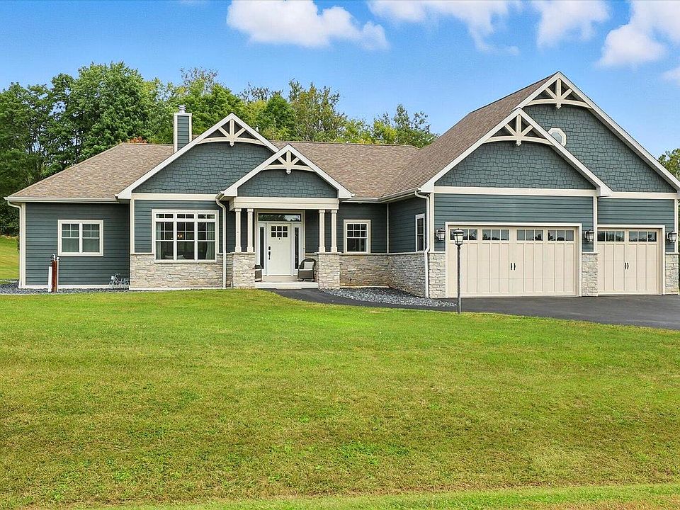 Why build when you can buy this custom built ranch on nearly 1.5 acres w/bonus 5th bedroom above garage & finished lower level in the quiet neighborhood of Wind Walker Highlands! Entertaining possibilities are endless from main level open concept layout to LL rec room spaces. Kitchen/dining area boasts generous island w/quartz countertops, stainless steel appliances, pantry & LVP flooring. Cozy up in spacious living room area w/vaulted ceiling, custom built-in shelving/bench, & GFP. Primary Bedroom suite offers Tray Ceiling, carpet, & generous WIC/storage. PBR bath features corner ceramic tile, spacious walk-in shower, dual quartz countertop sinks, & tub. Every square inch of LL is utilized for optimum entertaining potential w/4th bedroom & bath. See Seller Updates Sheet for more details!