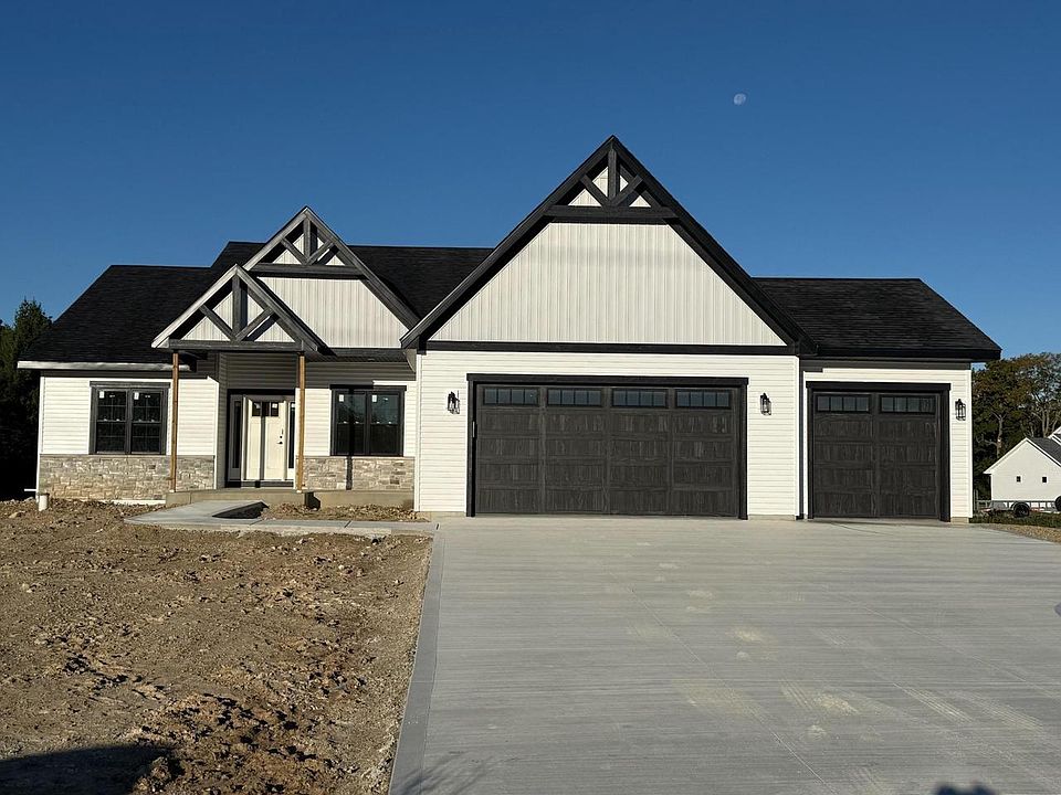 MASTERCRAFT BUILDERS 4 BEDRM/FLEX RM NEW CONSTRUCTION RANCH HOME! Split Bedrooms w/ open concept, daylight basement & 3 car garage on a 1 Acre lot in a newer subdivision. This Subdivision has 8 lots total that make up this quiet beautiful Prairie Style Subdivision w/ 4 outlots and 2 ponds. Location is perfect! Daylight basement w/stubs for full bath gives amble oppurtunity to finish and add another bedrm, bathrm, rec rm, etc. On main level there is a covered deck, direct vent corner fireplace w/ cust hearth, quartz counter-tops through-out entire home, tiled master bathrm and oversized tile shower, white solid core interior doors w/ wide profile trim, a mudroom w/ lockers and drop zone and many other modern touches. This one will not last long and is due to be completed in approx 6-8 we